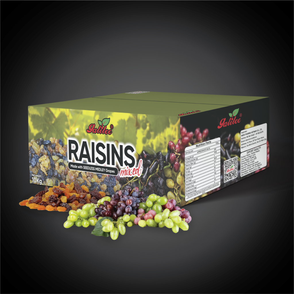 Made with Seedless Medley Grapes, mixed with 4 Colour Raisins.